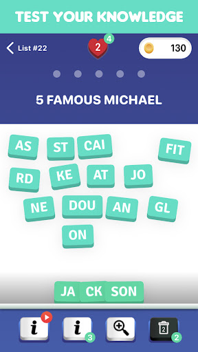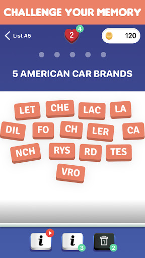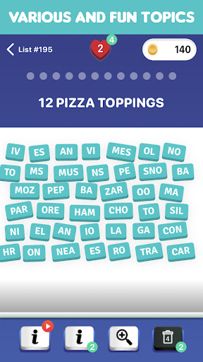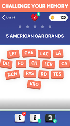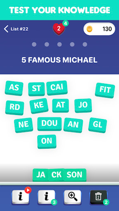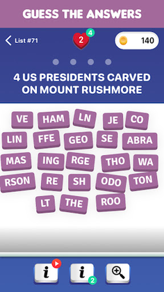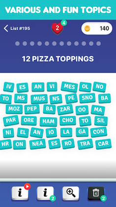 How to play ? nothing easier : all the answers are mixed in a word puzzle . Just paste all the right pieces together to complete the list and go to the next level.