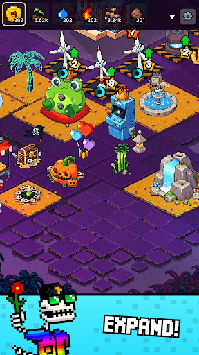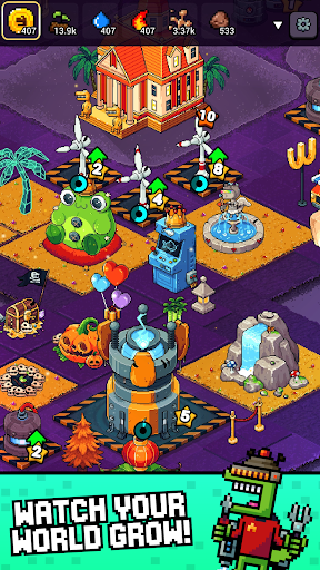 - Build Your Empire: Design and expand your domain with interconnected buildings, tools, and pathways. Optimize production, manage resources, and oversee your growing empire.