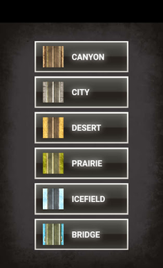 - Detailed environments: Canyon, City, Desert, Prairie, Icefield and Bridge
