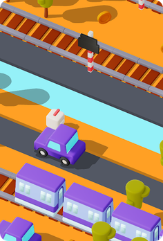 This fun arcade game will lock you in front of the screen for hours of fun! With its cute animal characters and a funny background, you won't be able to leave your device. The objective is to avoid the obstacles and help the chicken move forward. Dodge the traffic, trains, planes and turn the woodblocks to your advantage so that the character can cross the river. Also, try to collect as many coins as you can to unlock new characters from the in-game shop. Plan your moves and observe the environment carefully. If not, the chicken will hurt real bad! Don’t stand in the way of any incoming objects. Good luck with this amazing action-arcade game, and have fun playing!