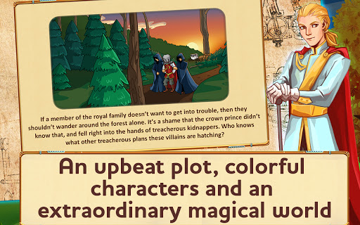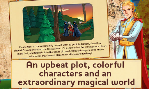 While her sisters daydreamed of crowns, gems and new dresses, Elena delved into the darkest caves, explored catacombs in search of eerie secrets and mysteries. And even status of chief maid of honor didn’t dampen her ardor. Incidentally, the queen never objected to her subject’s daring, bravery and desperate curiosity. Her Majesty had given Elena complex, and sometimes dangerous tasks more than once. Soon Elena and her friends and allies – Percy and Jorik – created a team that could solve any puzzle and handle the most difficult of tasks. All members of the royal family respected Elena. The maid of honor was particularly friendly with the Prince, the young nephew of His Majesty. He had long dreamed to take part in the adventures of Elena and her team, and he finally got the chance. The queen’s favorite corgi Buttercup went missing. The Prince knew Buttercup better than anyone from the team, which meant he could help Elena and her friends search for the queen’s beloved pet. As dusk began to fall, the team set off to scour the palace grounds, but Buttercup was nowhere to be found. “She probably ran off into the woods,” the Prince suggested. “We need to search there.” Trusting the Prince’s intuition, Elena, Jorik and Percy walked into the woods and followed the young man into its very depths. They walked in complete silence, when suddenly they heard voices and a dog barking nearby. As they crept up to the source of the sound, the friends saw two strangers in masks trying to shove a protesting and snarling corgi into a bag. “Let’s surround them and capture them,” Percy suggested. The friends nodded in response and split up, cutting off the villains’ retreat. Then a branch treacherously broke beneath the Prince’s feet. They had no time to waste – the friends jumped out of cover and rushed toward the kidnappers, but they dropped the corgi and the bag on the ground and ran into the gloom of the woods. “Wait, where’s the prince?” Jorik asked, looking from side to side. It was like the young man had disappeared into thin air. Join Elena on an incredible adventure through an alternate world of the Victorian era. You'll see incredible Scottish valleys, the rocky cliffs of Malta, a hot desert and much more! Can good prevail? Will Elena find the missing prince? In this game, you'll see: - An incredible alternate world full of amazing mechanisms and mysterious creations! - An intriguing storyline full of mystical events and cloak-and-dagger secrets. - Colorful graphics and fun animations. - Enjoy 50 exciting levels in 4 zones. - 3 game difficulty modes. - Useful bonuses: speed up work, speed up production, run fast. - Simple controls and a helpful tutorial. - Over 20 hours of exciting gameplay for any age. - Fun themed music. Crown of the Empire — Help the heroes find the missing prince!
