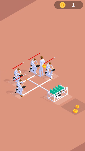 Use the joystick to control the player and build your room to mine bitcoin.