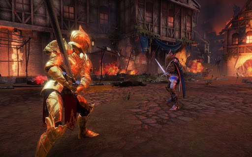 In one word, CryptoKnights is a game where two medieval Knights bash each other with Swords. The combat is performed real-time, but actions are made by playing Cards. It is thus a hybrid of Real-Time Fighting Game and Digital Collectible Card Game.