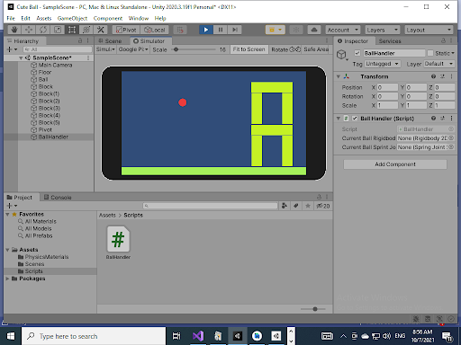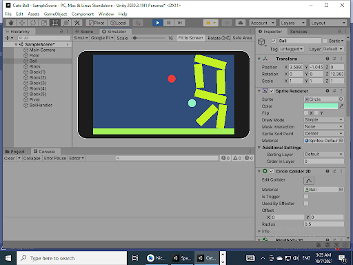 You can click with a finger on the vibrating ball or on any point on the screen and get a ball under your finger, and drag it towards the building.
