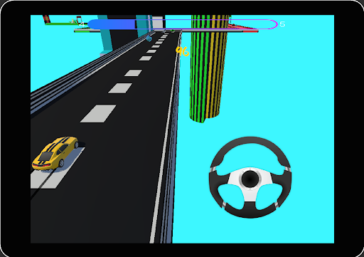 İn this game you can drive a car with a wheel controller and avoid obstacles to win the game
