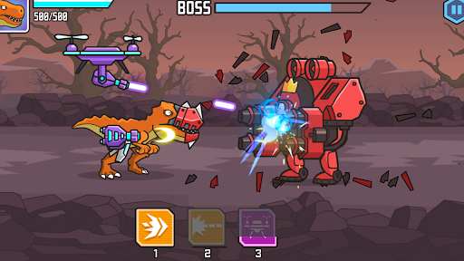The first thing you’ll do in CyberDino: T-Rex vs Robots is attacking. In attack mode, you roam through a series of battles against robots. You have 3 abilities to use with your default attack. There are 4 separate regions, each new place bringing tougher enemies, and a final boss at the end.