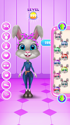 Have a delightful time with Daisy, the bunny, and let her introduce you to the wonders from her Candy World. Before you can get into that you must first prepare her. He needs to take a bath and also be nursed. Wash her fur and make her clean. Once you do that you can move into cleaning her house. Wipe the floor and get rid of the dirt. It looks like your pet's paw requires proper nursing. Follow the given instructions and do the right procedures for an injured bunny leg. Continue the grooming with a delicious food serving. Daisy will ask for a certain dish and you will serve her by her preferences. After the bunny's tummy is full you will move into designing her outfit. Create a unique aspect to suit Daisy's style and make sure you use your creativity for multiple looks. Put on nice accessories, add your mark on each of her outfits and try to incorporate various styles. Use those fancy dresses and build your favorite version of your pet. You can even chose her hairstyle and change the color of her fur. Customize as many looks as you can and make her feel fabulous in every one of them. Next you can enjoy the incorporated candy mini-game. Find out the best way to match and mix those candies and win the prize. Have fun and let Daisy show you how great is in the Candy World.