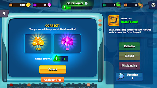 Explore unique island maps namely Chronicle Cove, Iconic Bay, and Ruler's Realm, where you'll stand together with intelligent companions such as the Journalist, Influencer, and Politician. Together, you shall uncover the secrets that lie behind the crisis. Handle the Crisis Impact Index using tactics and keep misinformation in check.
