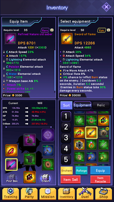 Equipment setting with unique characteristics by random skills attached to items.