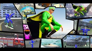 To solve these problems, you can use your power ablities such as laser beam from your hand or you can lift objects from the ground and smash them on the ground. You have one very special thing - you can fly. There are several shops. You can visit gun shop and buy from very huge range of weapons. You can go to clothes shop and pick a new dress for you. You can go to skate shop and get new skin on your skateboard. You earn money via completing missions. You can also get some money from bad people that you kill. You may try your luck and hack a ATM. Or you can also buy a stock on a stock market. There are more than 50 different cars, bikes, skateboards etc. You can go to air port and buy a airplane. Are your ready for great anti criminal adventure? Stealing auto cars, racing through streets, and shooting down gangsters. You can also buy a lot of things in a shop to help you complete missions and release the city from all mafia sinners. You can also work as a taxi driver or garbage man collector or fireman. Become a chief on the streets of anti criminality in town. There are several houses that you can buy and live in there. new abilities hole hurricane and others