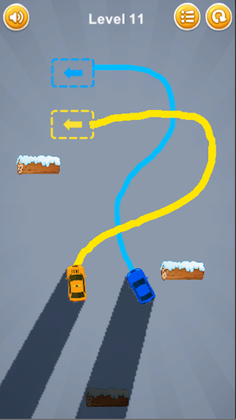 Sometime you have to park 2 or more than 2 cars in their matching color parking lot (P). By following the finger drawn path. if any of the car crashes into the other you loose the game. Draw different paths for different cars towards their parking lots using your finger. This is puzzle and to solve this draw parking puzzle think strategically and wisely so it will be fun and easy to park the cars in the parking lot (P).