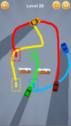 You have to draw multiple colorful paths for your cars to park them in their perfect parking lots, avoid obstacles and park your car easily.
