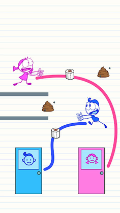 Slide your finger to draw the path that helps your favorite characters to find the toilet in a rush. Can you guide him to the right path and find the toilet on time? Game on.