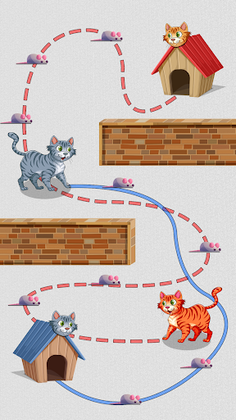 Save the pet puzzle game has two modes where your objectives are to stick with a cat rescue story to take the cat & mouse pets to their houses in a cat drawing game. But the real draw line puzzle challenge starts while drawing a line the cat and mouse must not collide with each other or you will fail the mission of dot dot rescue cat puzzle games. Making your clear way through the obstacles and reaching home safely lets you win the kitten racing game. Play save the pet puzzle games to enjoy epic draw draw to save the cat in a cat drawing game.