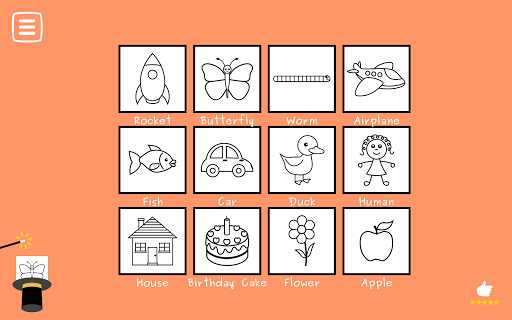 The child is asked to draw something from various themes, and then the drawing becomes magically alive. The child draws a butterfly, and Voila! the butterfly starts to flutter. The child draws a fish and the fish starts swimming. The airplane flies, the car drives away, the rocket is launched, the worm crawls, etc.