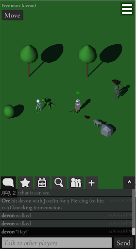 Dungeons with friends lets you easily set up, GM, and play tabletop style roleplaying games from anywhere on your mobile phone. This virtual table top is designed for asynchronous play - so you don't have to find a time that works for all of your players. Players get a push notification when things happen and to let you know when it's their turn to play. The app implements the open source fifth edition (5e) rule set so that you don't have to spend as much time reading source books, and instead focus on adventuring. The game incorporates 3d graphics to visualize the virtual world.