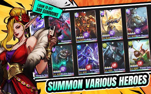 With a variety of game modes available, including Tower of Fate, Endless Abyss, and World Boss, there's always an exciting challenge waiting. Explore twelve unique maps with plenty of puzzles to solve, Easter eggs to unlock, and unexpected encounters. Build your own unique team with over 70 characters, and create more than 1,000 card combinations with 16 different races.