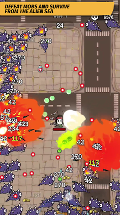 ⏱️ Intense Survival Waves: Battle through intense waves of alien adversaries, each lasting from 20 to 90 seconds, and slay as many as you can to become the ultimate survivor 🏆.
