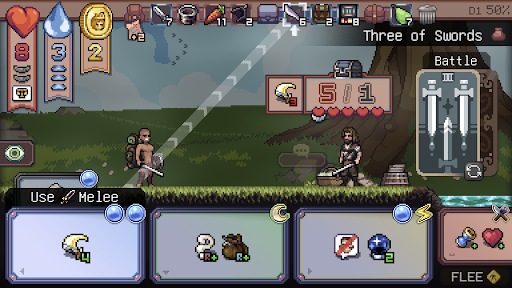 There’s no traditional world map. Instead, you travel through a deck of encounters, learning how to read risks, build momentum, and survive whatever fate deals next.