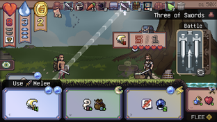 A run is a sequence of cards. Every draw is a situation to solve: fight, bargain, gamble, retreat, or take a hit now to avoid something worse later.