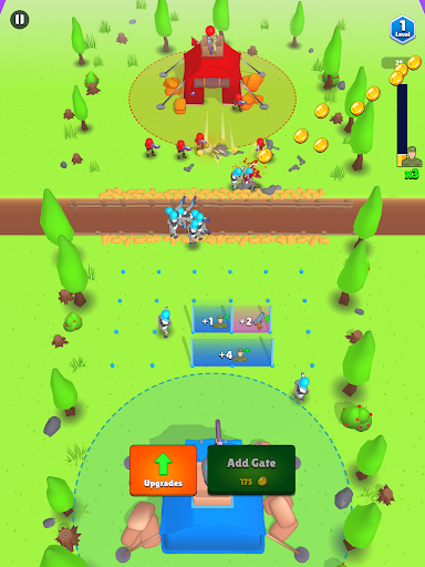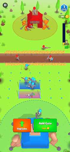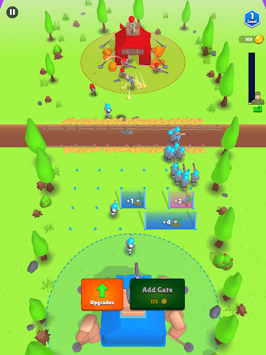 Increase the numbers and strength of your troops by passing them through the gates, tap quickly on the screen to get extra soldiers, destroy the enemy, and win the game!