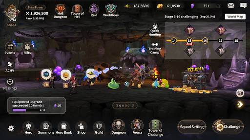 Collect 150+ heroes, defeat bosses with strategy, conquer dungeons, challenge world boss & compete in arena with an idle system.