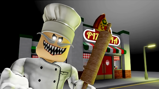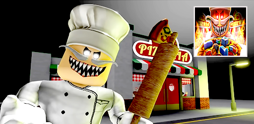 Escape the pizzeria Game is represented by chef pizza pizzeria horror game and obby parkour.