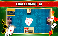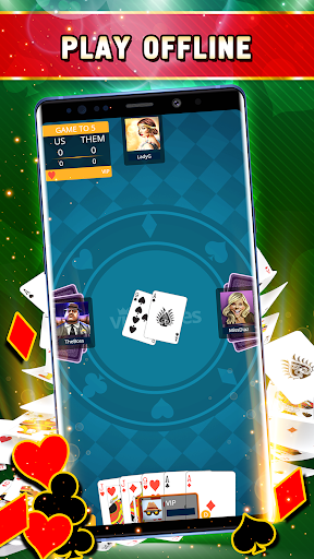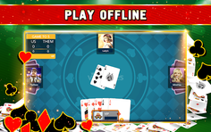 This classic card game is played by two teams of two people each, so with our Euchre Offline you will compete against our expert bots. In our Euchre single player card game a standard deck of 24 cards is used, consisting of A, K, Q, J, Ten, Nine of each of the four suits. Our app also has a game mode of playing with a game deck of 32 cards. When the players are in teams, they choose the trump suit, and try to win more tricks than the other team.