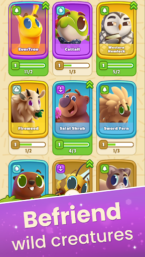 As you move through different game zones and explore secrets, you will uncover a wide variety of plantables and creatures, including trees, shrubs, and flowers, that, when merged on your Backpack Merge Board, will help you rack up serious rewards and solve your animal companions' puzzles. With each zone unlocked, you will also gain powerful boosts and expand your forest's borders.