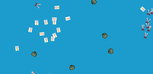 The first version has the creatures who look like living Rock, Paper and Scissors, and behave accordingly.