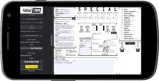 F0:TTRPG is a character sheet editor for a table top RPG inspired by a popular post-apocalyptic game.