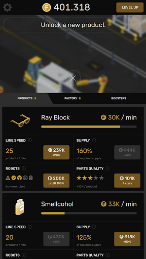 Explore Factory: Idle & Tycoon Game - the idle tycoon simulator and business game. Build a factory and become the business tycoon!
