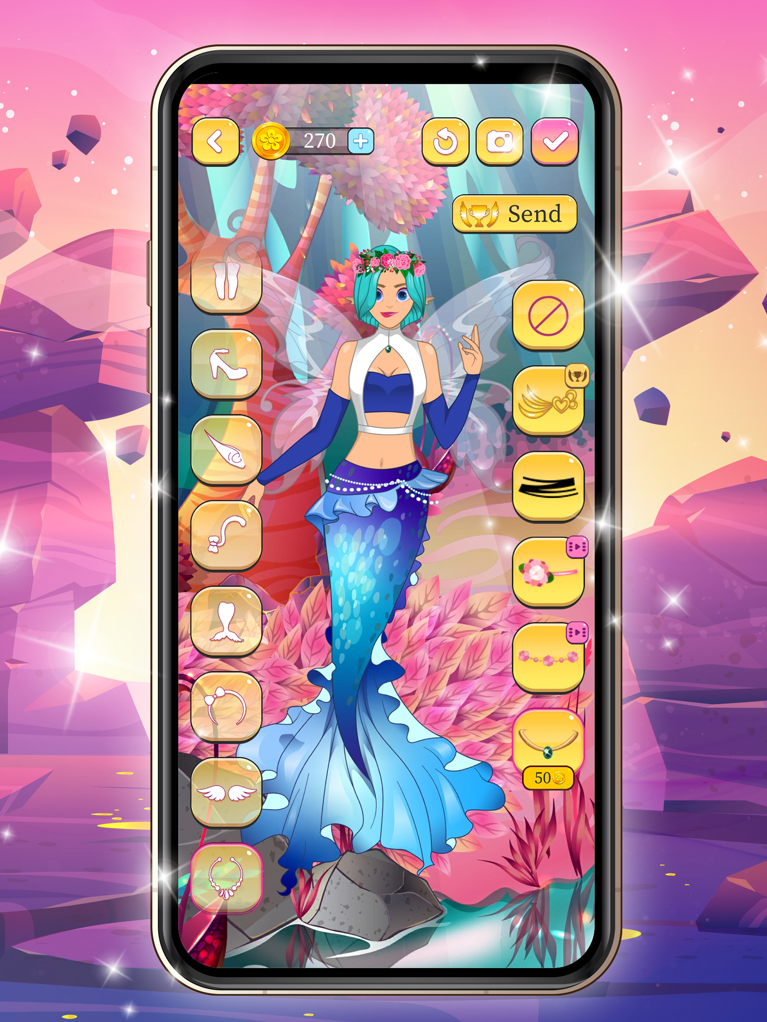 Go to shopping! Luxury clothes, fantasy costumes, the mermaid's tail, night gowns, shorts, pants and plenty of items to explore