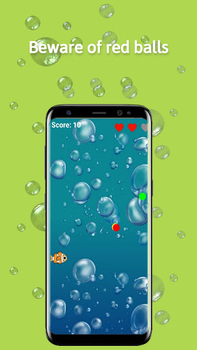 You need to constantly control the frequency of tapping the screen to adjust the height and sinking speed of the fish so that the fish can smoothly catch all the balls coming from the right side of the screen. If the fish accidentally touches the red balls, it will lose one heart. If all hearts are lost, the game is over.