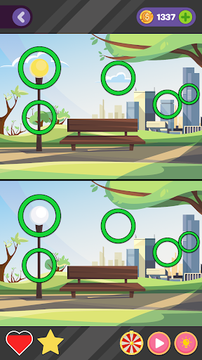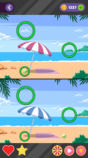 The purpose of the game is simple: just look at the pictures, find the differences, then tap each one you locate and get the best score.