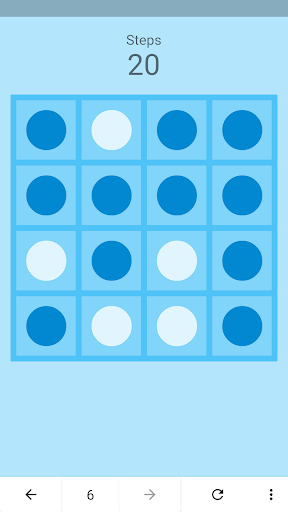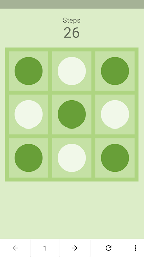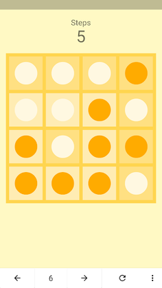 Click on any cell to flip the color of the circle of the adjacent cells.