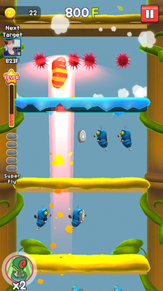 Get ready for an addictive game that's easy to play! Challenge yourself to soar higher with the popular Larva character. Fly past obstacles with one touch jumps and feel the thrills! Complete challenges to reach new floors and grab coins. Gather sausages for a power boost, which enables you to destroy all the oncoming barriers. Don't get disheartened if you fail; there are multiple perks to help you continue and reach higher levels.