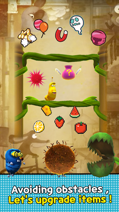 The game is continually updated with new Larva characters and game modes. The latest 1.2 update comes with an all-new point system where every action affects your score. Combo points are activated when you narrowly miss an obstacle, and you can boost your points by completing challenges. The Larva Episodes provide a new mode of play where you'll get star points based on experience. Rewards are up for grabs with several events.