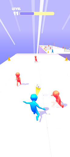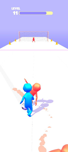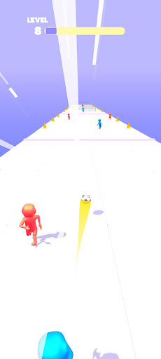 Dribble past opponents while they try to tackle you. Make sure not to kick away the ball outside the tracks or its game over.