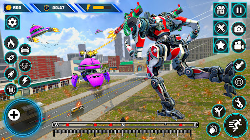 Get ready to become the next ultimate champion mech fighting robots strategy game and build your own megabot to plot your strategy and destroy opponents machines. Enroll in a super robot shooter game, kill the robotics machines 🚨 and become the number one. Army robots transform cars is a game where you can build, customize and upgrade your robots according to your style. You can increase the agility, strength and power of ultimate robot fighting games offline. To outsmart enemy robots 🤖 in fps robot shooting games use special boosts of rockets and movement to dodge enemy fires and kill enemy robot mechs while taking cover. Play a robot retro war game with the most exciting gameplay of a robotic game of this year.