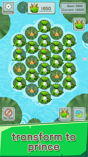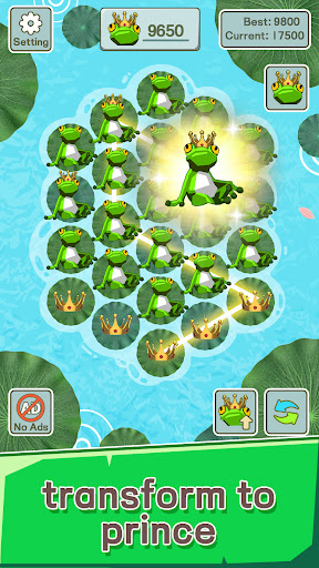 Frog Prince Transforming is a merging puzzle game with simple and casual art. Keep tapping and evolve tadpoles to frogs. Then just wait them to surprise you with some treasure from the pool! Collect crowns to transform a frog to a frog prince!