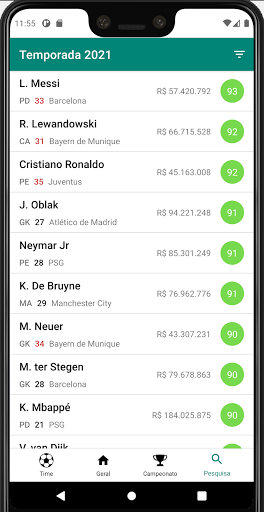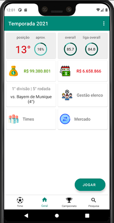 Um jogo mobile totalmente offline em que você assume o comando de um time de futebol, compra e vende jogadores, define táticas e participa decompetições.