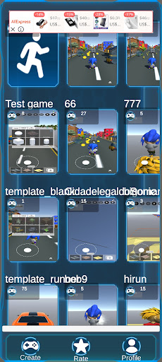 You can create endless runner games, third person shooter games, melee games and any other game in 3D. Your created games are published and can be shared with friends. You can also play dozens of games created by other game developers all over the world