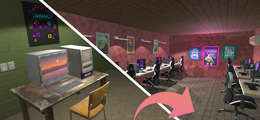 Start from scratch as a startup, and get to know how to make your business really profitable. Raise your productivity, upgrade the hardware. Create comfortable workplaces for every team in your internet cafe games. This Internet cafe job simulator game gives you an opportunity to create your own gaming virtual internet cafe, starting from one computer, after some time you will have several rooms, filled with gamers’ places. So get ready, manage your own internet cafe and build a monopoly!