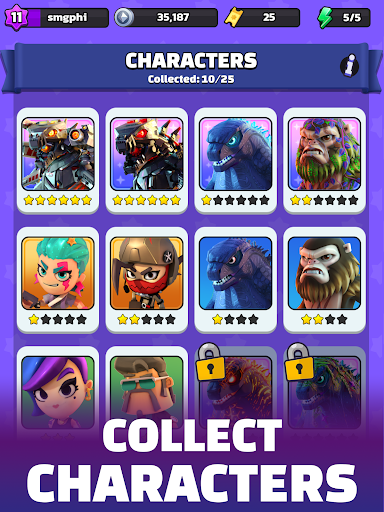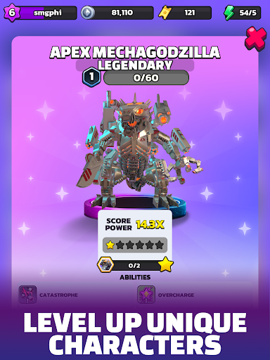 Start your journey as Godzilla or Kong and complete quests to unlock new characters and skins.