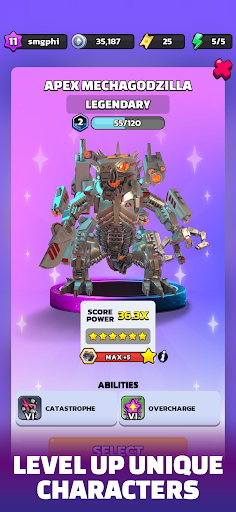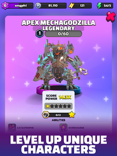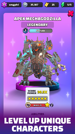 Enter the world of Go BIG! and smash your way to the top! Use your basic attack to smash items, and use your character’s unique ability to do massive damage. From shooting Godzilla’s Heat Rays to powerful ground pounds, every character is unique and different!