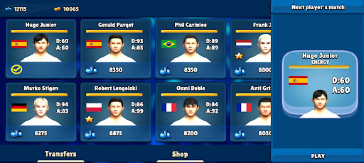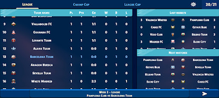 - tournament mode with group and knockout stages (Champ Cup, America Cup, Euro Cup, World Cup, League Cup)