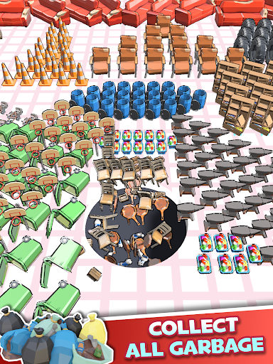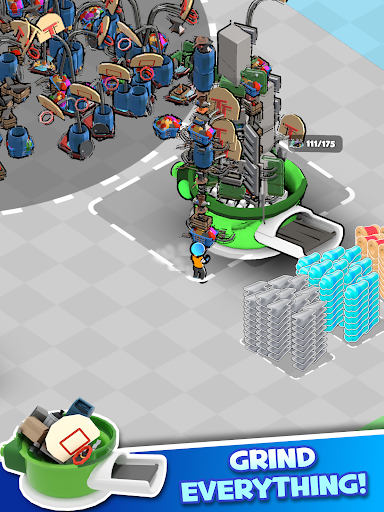 Collect trash with hole, take it to the shredder and create new objects in the machines!