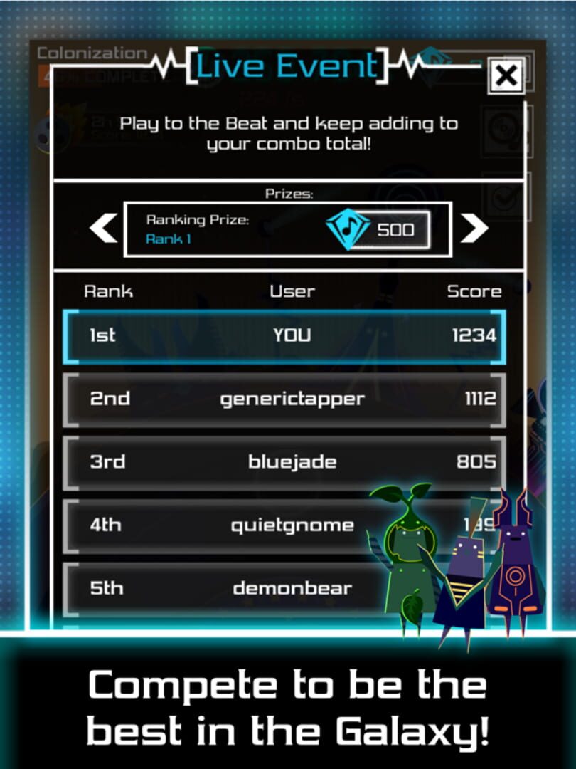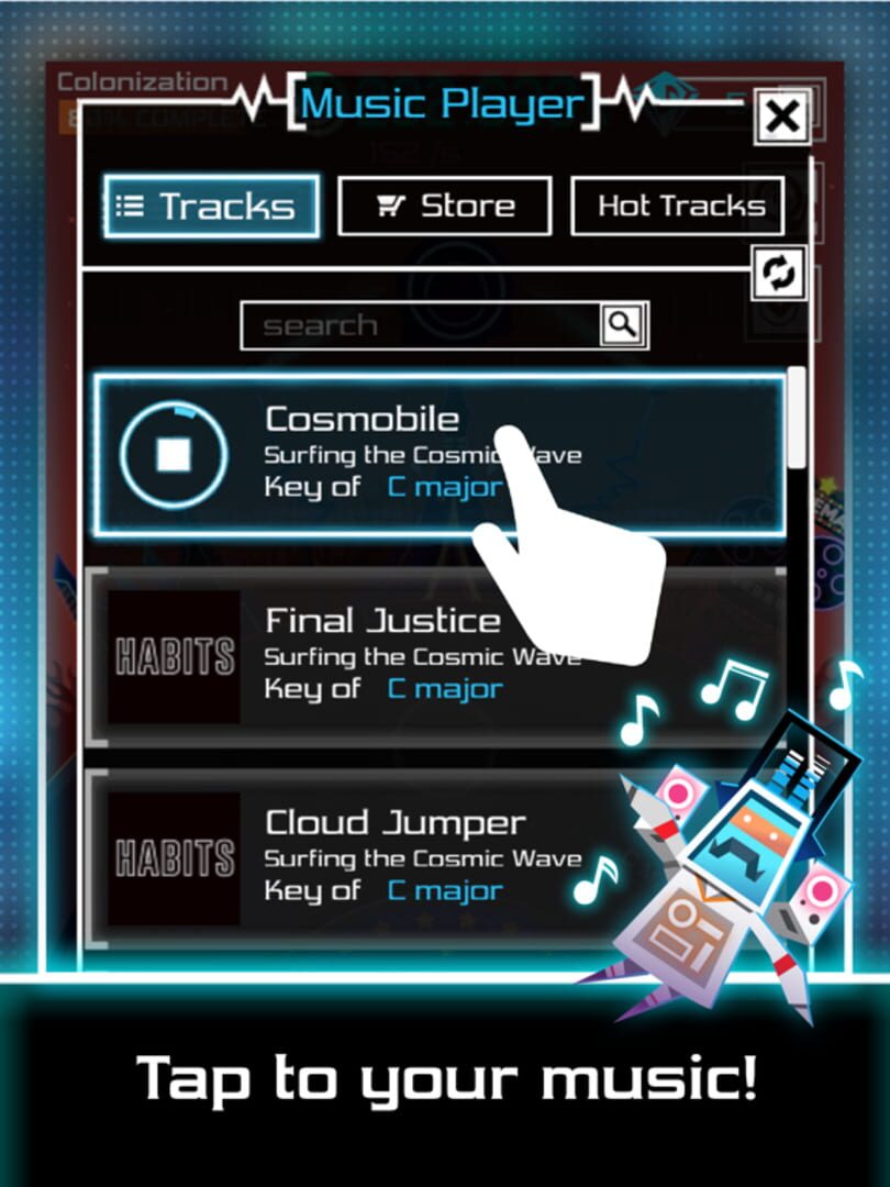 With the game's iTunes MUSIC COMPATIBILITY, choose any song from your library and TAP ALONG to the beat. In ASTEROID EVENTS, put your rhythm to the test and COMPETE AGAINST other players. Rewards await the players who showcase their superior rhythm skills.