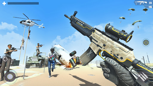 Gun Games - FPS Shooting Game has storyline game play for encounter the terrorist in team death match mode. Enjoy secret commando mission with assault guns in adventure games and battle like real shooting games to fire for free. FPS games is real counter terrorist strike game with advanced gun shooting game and enjoy new shooting level of fun games . Fire in this army commando game in offline shooting game and serve your tribe with your advances shooting skills in this offline shooting game. Get your gun from gun store and target your enemy in free gun strike game and win battle for your squad by killing terrorist in this action games . Critical war ops have modern weapons to enjoy gun games for free.